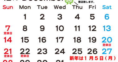 いつも、ご利用いただき、ありがとうございます。今年も残すところ、あと1ヶ月。…