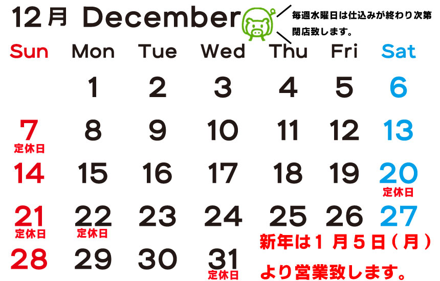 新年は1月5日より営業いたします。