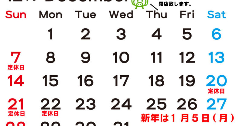 いつも、ご利用いただき、ありがとうございます。今年も残すところ、あと1ヶ月。…